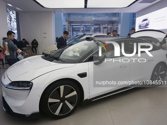Customers are learning about Harmony OS 4's first sedan ''LUXEED S7'' in Hangzhou, Zhejiang Province, China, on December 12, 2023.