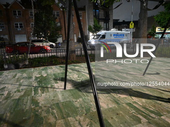 A 22-year-old man is shot in the head and a 40-year-old man is shot in the leg outside a NYCHA project in the area of 253 Kingsborough 2nd Walk in Crown Heights, Brooklyn, New York, United States, on July 13, 2025. On Sunday evening, July 13, 2025, at approximately 9:36 PM, within the confines of the 77th precinct, a 22-year-old man is shot in the head and a 40-year-old man is shot in the leg. Initially, the 22-year-old man is listed in critical condition, and the 40-year-old man is listed in stable condition. There are no suspects in custody, and the investigation is ongoing by the New York City Police Department. Members of the NYPD Crime Scene Unit gather on the scene to search for evidence and clues.