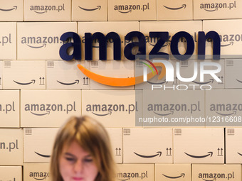 Prime packages are seen at Amazon stand during the 17th European Economic Congress in Katowice, Poland on April 23, 2025.