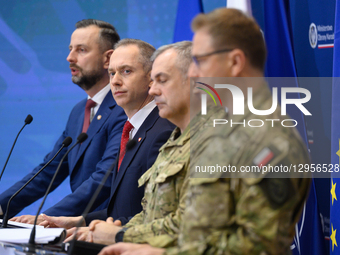 From left to right, Polish Deputy Prime Minister and Minister of Defence, Wladyslaw Kosiniak-Kamysz, State Secretary at the defence ministry Cezary Tomczyk, Chief of the General Staff of the Polish Armed Forces, General Wieslaw Kukula, and the Division General of the Polish Cyberspace Defence Forces, Karol Molenda, take part in a press conference at the General Staff of the Polish Army in Warsaw, Poland, on November 6, 2025. The Polish Deputy Prime Minister and Minister of Defence, Wladyslaw Kosiniak-Kamysz, holds a press conference in which he presents, together with State Secretary at the defence ministry Cezary Tomczyk, the Chief of the General Staff of the Polish Armed Forces, General Wieslaw Kukula, and the Division General of the Polish Cyberspace Defence Forces, Karol Molenda, a new defence public training programme called ''wGotowosci'' (In readiness). This programme is aimed at every Polish citizen from the age of 18 who wants to deepen their knowledge about defence, first aid in situations of natural disaster or armed conflict, and cybersecurity, among others. Every Polish citizen can sign up for the training voluntarily via the government's ID App mObywatel. The government, led by Prime Minister Donald Tusk, aims to train 100,000 volunteers annually by 2027 and works to increase the availability of training for citizens, as well as enhance national security through initiatives like improved emergency shelters and self-defense courses for the public.