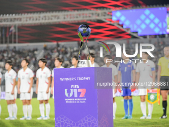 The trophy detail is present during the FIFA U17 Women's World Cup Morocco 2025, 1st - 2nd place match between Korea DOR and Netherlands in Rabat, Morocco, on November 8, 2025, at the Olympic Stadium.