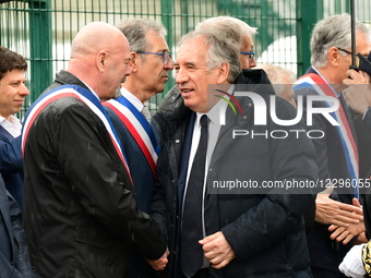 Prime Minister Francois Bayrou visits the Saint-Quentin-Fallavier Penitentiary Center in Isere, France, on April 23, 2025, to express his support for the staff following the attacks and vandalism targeting prisons and prison officials in France.