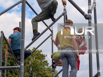 Dancers from the British company Motionhouse perform the outdoor dance-circus production ''WILD'' during the Tollwood Festival in Munich, Bavaria, Germany, on July 10, 2025.