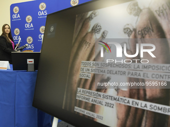 Executive Director of the CASLA Institute, Tamara Suju speaks about The Systematic Repression in the Shadows: The Military Counterintelligence Manual and Responsibility for Crimes Against Humanity in Venezuela during the Presentation of the Annual Report, today on February 15, 2023 at San Martin room/OAS in Washington DC, USA.