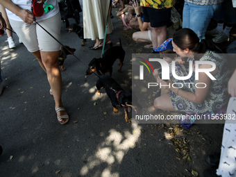 Participants of the 26th Dachshund March march along the Vistula River in Krakow, Poland, on September 8, 2024. The Dachshund March is organized every year in Krakow. Hundreds of lovers and owners of the ''sausage dogs'' gather to walk through the streets of the city. During the event, participants can use free advice from specialists, see dogs waiting for adoption, or sign for increased protection of animal rights.