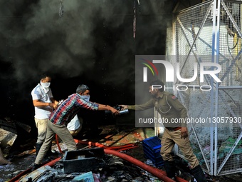 Firefighters douse a fire that breaks out at an ice cream factory in Kartarpura Industrial Area, Jaipur, Rajasthan, India, on December 4, 2025.