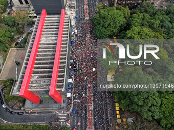 Women and various social movements hold a demonstration on Sunday, December 7, 2025, on Paulista Avenue, in the central region of Sao Paulo, to denounce the increase in the number of femicide cases and oppose all forms of violence that violate women's rights.