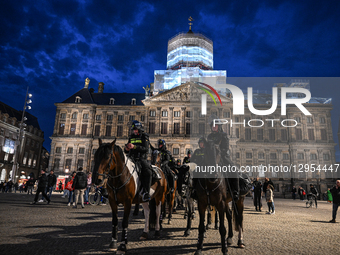 In Amsterdam, Netherlands, on November 5, 2025, large groups of Galatasaray supporters gather in central Amsterdam ahead of the match against Ajax. They chant and light flares as police maintain a strong security presence. Authorities monitor the crowds to ensure public order during the buildup to the game.