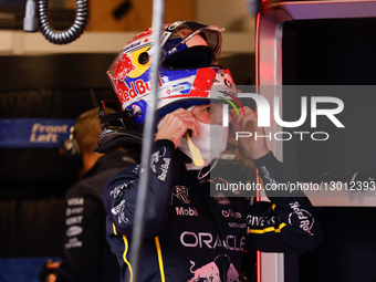 Max Verstappen prepares for the third practice session ahead of the Formula 1 Heineken Las Vegas Grand Prix in Las Vegas, Nevada, on November 21, 2025.