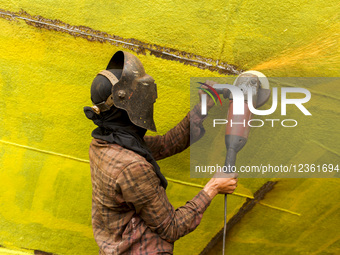 Portrait of Md. Altaf who works at a shipbreaking yard along the banks of the Buriganga River in Dhaka, Bangladesh, on May 13, 2025. Using manual tools and sheer determination, they navigate hazardous conditions to salvage metal and other materials for reuse, highlighting the dangers and economic necessity of the industry. Thick plumes of smoke and the deafening clatter of metal fill the air around the shipbreaking yards, where environmental degradation and unchecked noise pollution paint a stark portrait of industrial sacrifice.