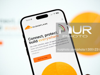 The Cloudflare website is visible on a mobile phone screen in this illustration photo taken in Warsaw, Poland, on November 18, 2025.