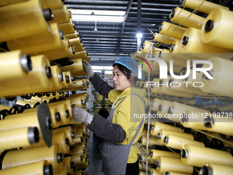 A worker works at a workshop of Zhonghong Packaging Company in Lianyun district, Lianyungang city, East China's Jiangsu province, on March 27, 2025. On the same day, the National Bureau of Statistics releases data showing that in January and February 2025, the total profit of industrial enterprises above designated size in the country is 910.99 billion yuan, down 0.3% year-on-year.