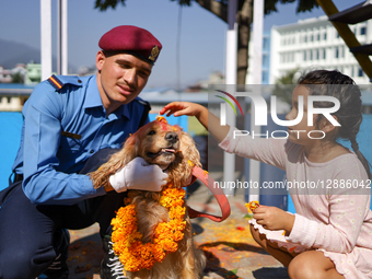 A Nepal Police service dog is worshipped during the Kukur Tihar celebration in Kathmandu, Nepal, on September 20, 2025. In the Central Dog Training School in Kathmandu, the dogs receive garlands and a medal for their special contribution to security and helping in solving cases. The dogs, regarded as guardians and messengers of Yama, are offered garlands, bread, and are worshipped with vermilion powder and flowers. In the Rigveda, one of the Vedas in Hindu religion, Samara, the mother of dogs, assists Indra, the ruler of heaven, in retrieving stolen cattle. On the second day of Yama Panchak or Tihar, pet and stray dogs in Nepal are worshipped early in the morning for the devotion and sincerity they show. The canine, known for its trust as a sentry and as a faithful companion to humans since ancient times, is worshipped annually in Nepal.