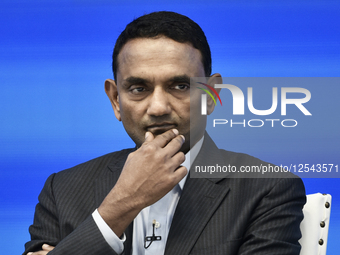 K. Krithivasan, CEO and Managing Director of Tata Consultancy Services (TCS), speaks during a press conference to announce the company's first quarter earnings at the TCS headquarters in Mumbai, India, on July 10, 2025.