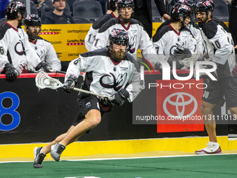 Landen Sinfield, 29, of the Philadelphia Wings, participates in an NLL box lacrosse game at Xfinity Mobile Arena in Philadelphia, United States, on December 13, 2025