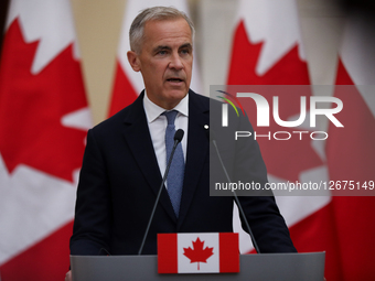 Mark Carney, Prime Minister of Canada, meets with Donald Tusk, Prime Minister of Poland, at the Chancellery of the Prime Minister in Warsaw, Poland, on August 25, 2025. Poland is Canada's largest trading partner in Central and Eastern Europe. The talks focus on Poland-Canada relations and security issues in the context of the current international situation. The Polish Prime Minister announces that he does not intend to send Polish troops to Ukraine.