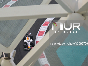 Oliver Bearman of the MoneyGram Haas F1 Team participates in FP3 on Yas Island, Abu Dhabi, on December 6, 2025.