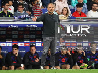 "Hansi Flick coaches FC Barcelona during the La Liga EA Sport..."