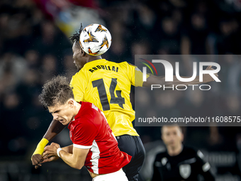 AZ Alkmaar midfielder Wouter Goes and IF Elfsborg forward Jalal Abdullai during the match AZ vs. Elfsborg at the AZ Stadium for the UEFA Europa League - League phase - Matchday 1 season 2024-2025 in Alkmaar, Netherlands, on September 25, 2024