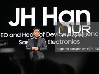 LAS VEGAS, USA - JANUARY 6: JH Han, Vice Chairman, CEO, and Head of Device Experience at Samsung Electronics, speaks at CES 2025 in Las Vegas, Nevada, USA, highlighting Samsung's latest technological innovations, on January 6, 2025, in Las Vegas, Nevada, USA.