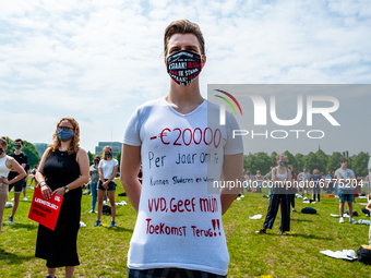 A group of students are holding placards against the student loan system, during the Nationwide student strike, organized in The Hague, Netherlands on June 3rd, 2021.