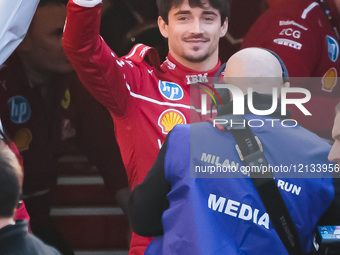 Charles Leclerc attends the Scuderia Ferrari HP Drivers' Presentation by UniCredit event with a street demo in the city circuit through the streets of the city center in Milan, Italy, on March 6, 2025