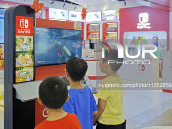 Children are experiencing the Switch game console at a Nintendo store in Weihai, East China's Shandong province, in Yantai, China, on June 15, 2024.