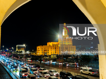 View of the traffic flow in Doha, Qatar, on March 27, as people shop ahead of Eid Celebrations, the major festival of Islam after the fasting month of Ramadan.