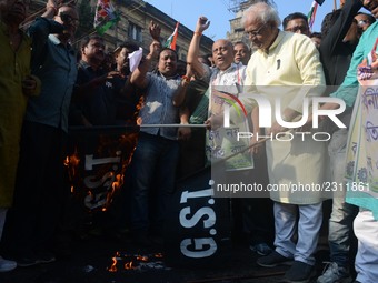Indian Political party Trinamol supporters burn effigy Indian Prime minister Narendra Modi at the protest against BJP government Demonetisation issue and celebrates the Black day on November 08,2017 in Kolkata,India.
