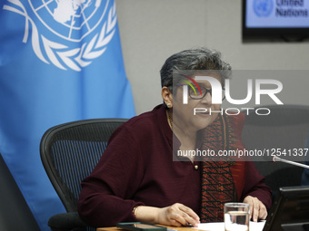 Rabab Fatima, High Representative, Office of the High Representative for the least developed countries, landlocked developing countries and small island developing states (UN-OHRLLS) on the third UN Conference on Landlocked Developing Countries (LLDC3, Awaza, Turkmenistan, 5-8 August)speak at a press conference at the UN Headquarters On July9 in New York City.