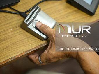 The passport application process resumes at the District Administration Office in Kathmandu, Nepal, on October 15, 2025, one month after the Gen Z protest against corruption, during which demonstrators clash with authorities, cause property damage, and partially burn the DAO office.