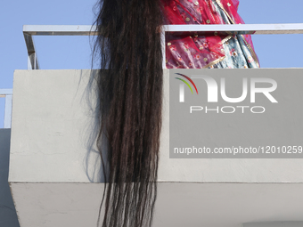 Renu Dhariwal showcases her long hair in Haldwani, Uttarakhand, India, on April 23, 2024. Renu Dhariwal starts growing her hair in 2015 and has since been awarded numerous awards and broken several records with her hair length of 274.32 cm (9 feet). Now Renu has her sight set on breaking the Guinness World Record for Longest hair on a living person (female) (the current record holder is Aliia Nasyrova with a hair length of 257.33 cm (8 ft 5.3 in)). Renu Dhariwal sets a record in 2023 when her hair length is 265.17 cm (8 ft 7 in) for the longest hair in India. Renu's name is also recorded in India Book of Records (in 2020 when Renu's hair length is 95 inches), India Star Book of World Records (on June 20, 2023), and the Uttarakhand Book of Records (on December 19, 2020). She wins numerous awards including the Uttarakhand Icon Award in 2021 due to her impressive hair length. Renu currently helps other women with hair and beauty tips on her two YouTube channels (MRDLonghairUttarakhand and M.R.DVlogsUttrakhand) where she shares advice and secrets including how to make her chemical-free homemade hair oil and homemade shampoo. Currently, both channels boast well over 100,000 subscribers each.