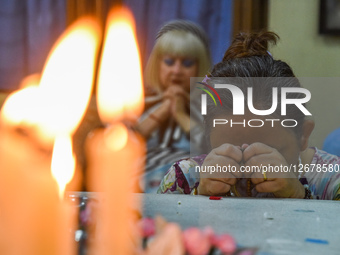 A woman attends a special evening prayer organized on her 115th birth anniversary at Mother House, the global headquarters of the MoC, in Kolkata, West Bengal, on August 26, 2025.