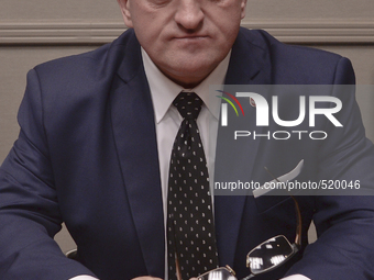 Marian Kowalski, Ruch Narodowy's candidate in next month’s Polish presidential election, during a debate with an independent candidate Grzegorz Braun at Jurys Inn Hotel, as the original venue Academy Plaza Hotel need to be cancelled due to the Irish anti-racism and anti-fascist group. Dublin, Ireland, on April 10, 2015.