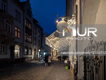 People enjoy a warm winter evening on the streets of Freiburg im Breisgau, Baden-Wurttemberg, Germany, on February 22, 2025