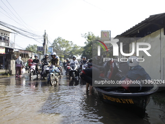 Residents attempt to save a motorcycle from floodwaters using a small boat in Dayeuhkolot, Bandung, West Java, Indonesia. Heavy rain sweeps through the area, and the overflowing Citarum River inundates residential neighborhoods with water levels ranging from 50 centimeters to two meters, disrupting daily activities and paralyzing transportation access.