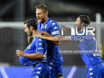 Filippo Bandinelli of Empoli FC celebrates scoring first goal during the Serie A match between Empoli and Lazio at Stadio Carlo Castellani, Empoli, Italy on 21 August 2021.