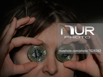 In this photo illustration a nitizen holds a physical commemorative Bitcoin. On Tuesday, 9 March, 2021, in Dublin, Ireland.