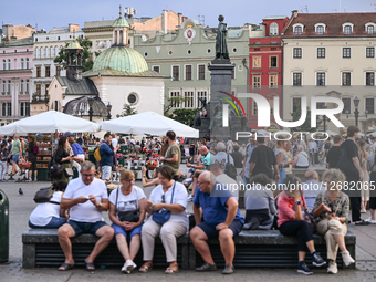 KRAKOW, POLAND – AUGUST 27: Middle Eastern tourists explore the Old Town in Krakow, Lesser Poland Voivodeship, Poland, on August