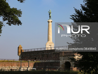 Pobednik or The Victor, the iconic monument of the Balkan War with a miniature in the Fortress in the capital of Serbia, Belgrade, that are the old citadel with the upper and lower town and Kalemegdan park over the confluence of rivers Danube and Sava. The fortress os the most famous attraction of Serbia.