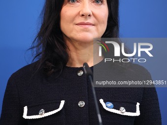 Katherina Reiche, Federal Minister for Economic Affairs and Energy, and Stephane Sejourne, French Executive Vice-President of the European Commission for Prosperity and Industrial Strategy, give a press statement at the 'Friends of Industry' conference at Radialsystem in Berlin, Germany, on November 3, 2025.