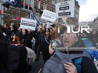 Anonymous for the Voiceless activists and supporters after the 24-hour Cube of Truth protest take part during protest march on May 12, 2019 in Amsterdam,Netherlands. During 24-hour Anonymous for the Voiceless dedicated to exposing what is happening to the animals, environment and health.
