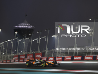 Lando Norris of United Kingdom driving the F1 race car No 4, the McLaren MCL39 McLaren Formula 1 Team, on track during the sunset at Free Practice 2 ahead of the 2025 Formula 1 Etihad Airways Abu Dhabi Grand Prix at Yas Marina Circuit. Abu Dhabi, United Arab Emirates on December 5, 2025.