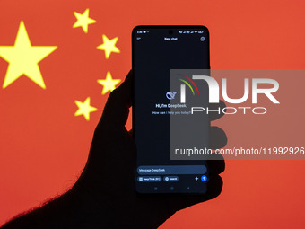 DeepSeek photo illustration of the AI app environment with the logo.DeepSeek is a Chinese artificial intelligence company that develops open-source large language models LLM in a fraction of the cost of the US based competition. DeepSeek logo displayed on a smartphone screen with the flag of China on a screen in the background. Amsterdam, the Netherlands on January 28, 2025