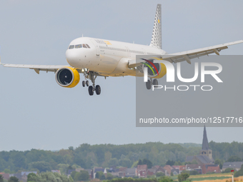A Vueling Airbus A321-271NX lands at Zaventem International Airport in Brussels, Belgium, on June 27, 2025.