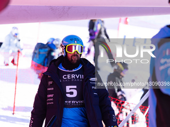 Lorenzo Sommariva from Italy participates in the warmup phase at the FIS SBX World Cup in Cervinia, Italy, in 2025.