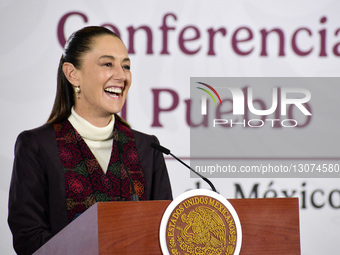 Mexico's President Claudia Sheinbaum Pardo speaks during a briefing conference at the National Palace in Mexico City, Mexico, on December 8, 2025.