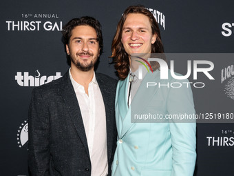 American actor, singer-songwriter, and musician Nat Wolff and American actor, singer, DJ, and producer Ansel Elgort arrive at the 16th Annual Thirst Gala 2025 held at the SLS Hotel, a Luxury Collection Hotel, Beverly Hills in Los Angeles, California, United States.