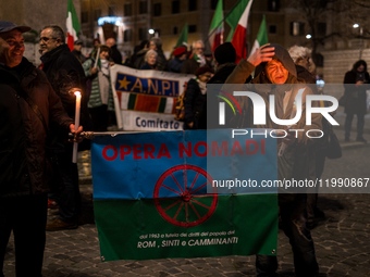 A torchlight procession for the forgotten exterminations, including the Porrajmos of Roma-Sinti, the disabled, and the homosexual holocaust, takes place 80 years after the liberation of Auschwitz on the occasion of the International Day of Remembrance on January 27, 2025, in Rome, Italy.