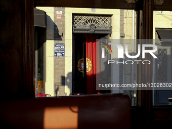 "A Portugal flag is seen from the Linha 1 tram in Porto, Port..."
